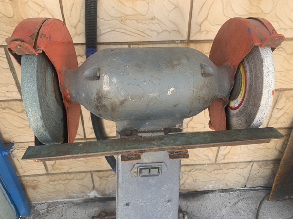 砂轮机磨刀托架得巧用。在机修车间,车刀在磨削的过程中,因砂轮摩擦力和惯性,易使车刀向砂轮旋转方向下滑,一旦握持不住刀具,易发生伤害肢体的事件。针对这一情况,机动设备部对砂轮机进行了改造,取长度合适的三角铁及铁板制作托架,固定于砂轮机砂轮前端,能够有效避免在磨削过程中因砂轮摩擦力及握持力度过大造成的伤害事件,提高作用过程中的安全性。