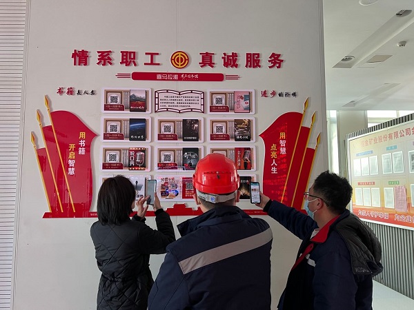 “这个图书室打破了传统图书馆的形态和限制,在线下呈现的是一面带有图书二维码的文化墙,职工只需要打开手机扫描二维码,即可随时随地免费收听各类书籍。让职工在休息之余能徜徉书海,爱上学习,也是我们一直在做的工作。”该矿工会主席介绍道。