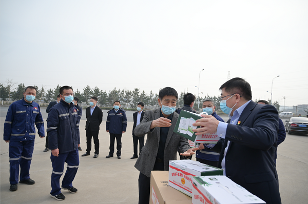 为进一步发挥工会联系职工群众的桥梁纽带作用,切实把工会的关怀及时送到一线员工的心坎上,3月24日,招金矿业工会联合招远市总工会,分别深入封闭管理的招金矿业金翅岭金矿、招金矿业大尹格庄金矿,对坚守岗位一线职工进行慰问,将4000余箱牛奶送到一线员工手中,对他们的坚守付出和辛勤工作表达诚挚的敬意。慰问现场,市总工会及招金矿业工会领导询问了企业当前遇到的困难和需求,各级工会表示,工会组织作为职工群众的“娘家人”,将不遗余力地支持和关爱奋战在生产一线的干部职工,做好各项服务保障工作,同招金矿业全体干部职工并肩作战,守住来之不易的抗疫成果,齐心协力夺取此次疫情防控的全面胜利。