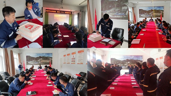 为热烈庆祝中国共产党成立101周年,回顾党的奋斗历史,讴歌党的光辉历程,6月27日下午,早子沟金矿党支部组织开展了“庆七一,喜迎党的二十大”专题系列活动。活动中,支部书记于明海带领全体党员在党旗下进行了庄严宣誓,随后做题为《喜迎二十大,奋进新征程》的党课讲解,旨在激励全体党员奋发实干作为,以实际行动诠释一名共产党员的责任、使命和担当。最后全体党员一同庆祝政治生日,支部书记向全体党员切发“生日蛋糕”,希望同志们“吃甜不忘苦”,夯实工作作风,吃苦在前、享受在后,以一往无前的奋斗姿态和永不懈怠的精神状态迎接二十大的胜利召开!