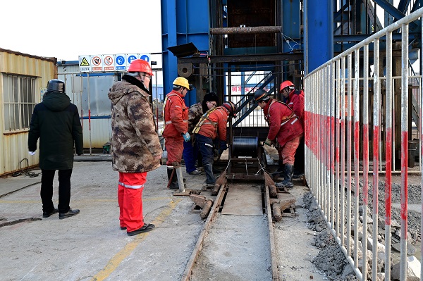 此次测量定向共布置井下3个中段共4个测点,分四步进行联系测量。现场作业过程中,测量人员明确具体的分工,组成由地表和井下同时测量的两个小组,作业人员熟练的固定钢丝线、下钢丝、贴反射片。由于井上下采用同一个坐标基准和高程基准,地面作业人员冒着刺骨的寒风细致做好地面坐标高程测量工作,井下作业人员顶着高温在各个工作面开展观测工作。尽管时间紧、任务重,但现场测量作业人员团结一致、齐心协力,将安全、质量、技术制度严格落实到工作的每一个环节,确保各环节层层受控。经过十余个小时的连续作业,最终顺利完成了竖井联系测量定向工作,为后续精确指导探矿,实施溜井、通风巷等贯通工程准确测点提供依据。
