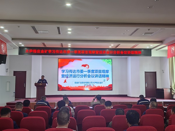 大尹格庄金矿组织中层以上干部学习《一季度项目观摩暨经济运行分析会议讲话》精神,矿长孙书彬要求进一步强化安全意识,细化安全管理,保障安全生产,所有干部职工在各自岗位上勤勉履职,以更高政治站位和更强使命担当积极主动履职尽责,不折不扣狠抓落实,确保各项工作任务落到实处、终端见效,用敢于担当的实际行动,交出一份“大干二季度、奋战超过半” 的合格答卷!