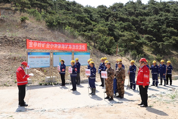 为贯彻落实“安全第一、预防为主、综合治理”方针,规范企业应急管理工作,提高应对风险和防范事故的能力。近日,招远市金亭岭矿业有限公司组织开展了尾矿库汛期溃坝应急救援演练。企业主要负责人杨少河担任演练总指挥,安全总监刘朋担任现场指挥,安全科、设备能源科(调度中心)、选矿车间、生产技术科及救护分队等相关单位共57人参加演练。招远市应急管理局及招金集团安环部相关领导现场观摩了演练。