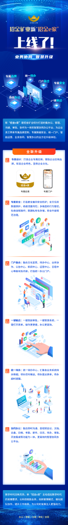为全面推进数字化转型升级,近日,招金矿业新招金e家平台成功上线,该平台以“四新”融汇聚合企业运营业务,合而为“e”,打造统一高效办公平台。