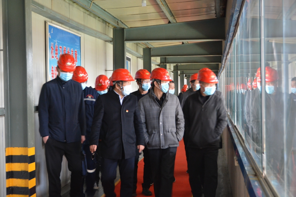 裴文田司长(右二)在夏甸金矿选矿厂检查企业大排查大整治情况 裴文田司长听取企业大排查大整治落实情况汇